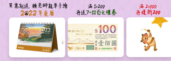 [已結束]【2022嶄新開始】買書就送「賴老師親繪2022桌曆」,滿1,200再送 7-11百元禮券,滿2,000現折200!