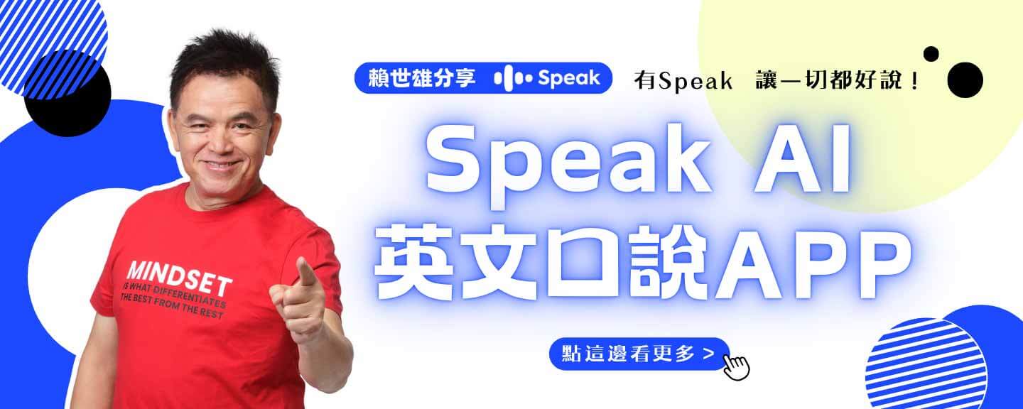 現在點進 賴老師專屬連結 訂閱 SPEAK AI 英文口說 app,享有 SPEAK 年度會員超優折扣!