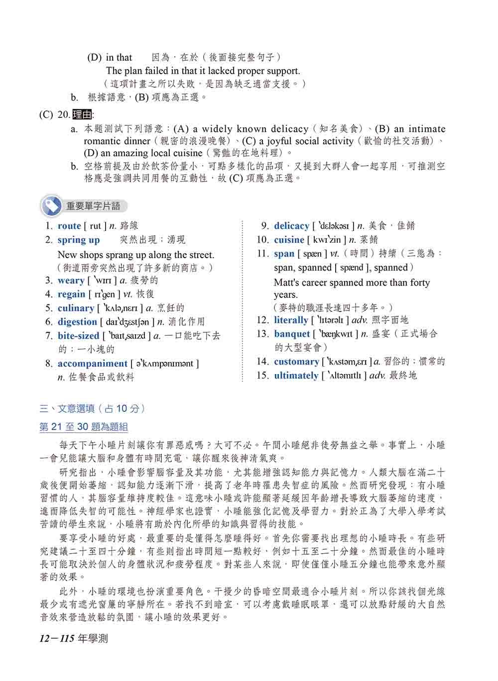此外,為了讓考生多加熟悉新制學測的考題,在本書中特編入 110 年試辦學測試題並加以詳細解析、翻譯,期望讀者能充分利用,提升應考戰力。
