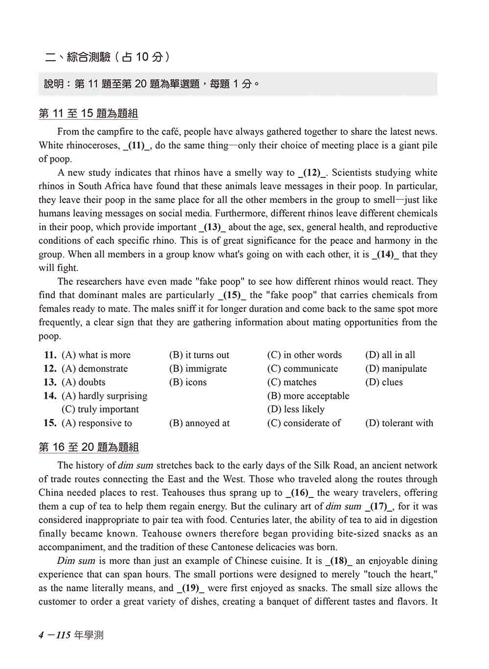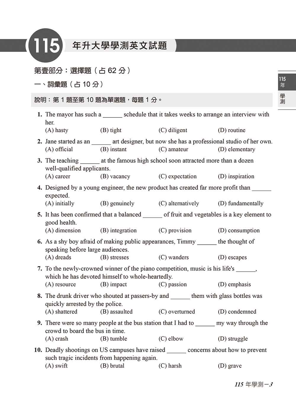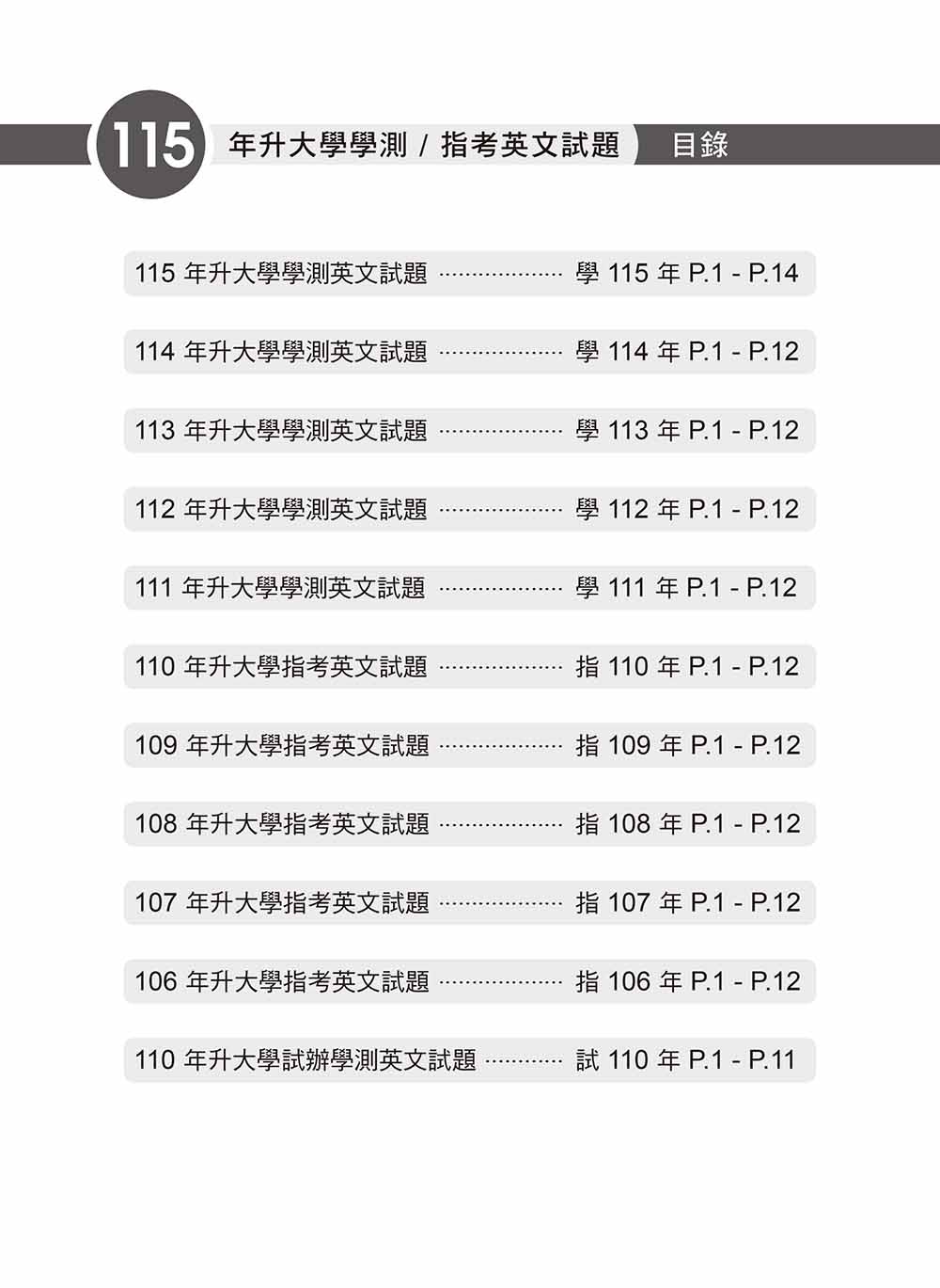 115 年升大學學測英文試題﹝115年升大學學測 / 指考英文詳解本﹞
