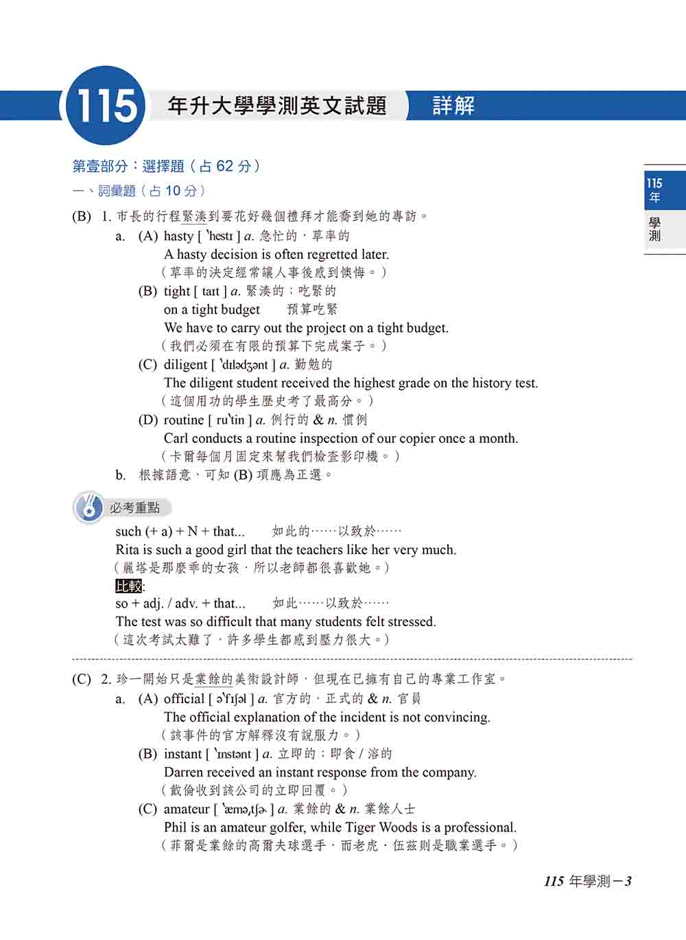 本書附 115 年度學測試題詳解,搶先掌握最新考題!