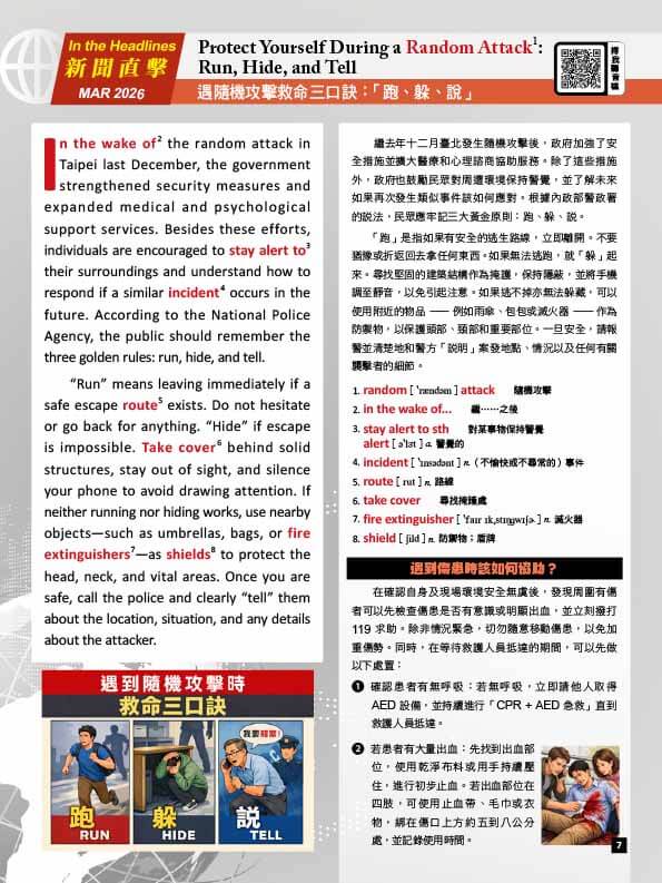 • 時事新聞:遇隨機攻擊救命三口訣:「跑、躲、說」